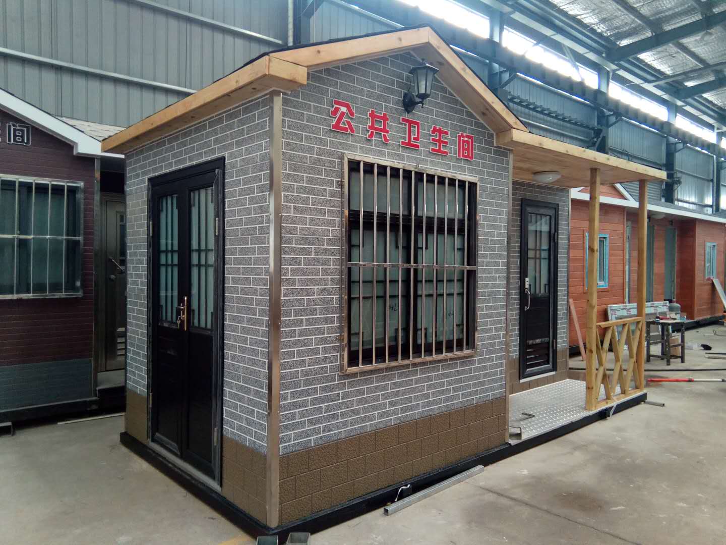 移動廁所簡介及制作方法:1、房體結(jié)構(gòu): 采用輕鋼龍骨結(jié)構(gòu),鋼材全部使用標(biāo)準(zhǔn)鍍鋅鋼材。根據(jù)房體的大小特選用國標(biāo)方管(50-100)焊接而成。鍍鋅管厚度為2.8mm,方管經(jīng)過除銹后進行鍍鋅、防腐處理,這樣就會延長廁所使用壽命.2、墻體: 墻板采用金屬雕花板,金屬雕花板是保溫、隔熱、環(huán)保、阻燃、防雨、防凍、隔音、抗震等...