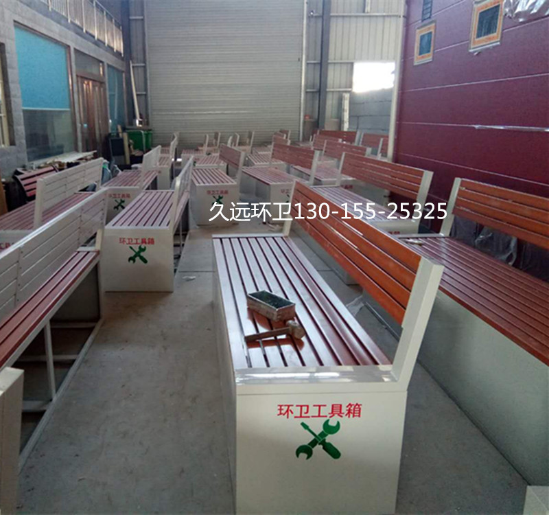 環衛工具箱:也叫保潔員工具箱,環衛工具椅,保潔員休息座椅,市政保潔箱等。工具箱常用尺寸為:長2400*寬500*高550mm,也可以做成2米,2.4米,2.7米等,寬度和高度也可以定做,滿足不同客戶、不同場所的使用要求。