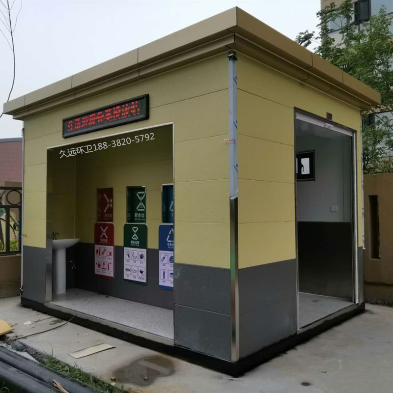 生活垃圾分類投放站廠家定制——久遠環衛是一家集研發生產、銷售服務為一體的大型環衛設備生產企業,公司注冊資金5000萬元,占地面積50余畝,擁有現代化生產車間1萬余平方米,辦公面積1000余平方米,在職員工200多人,具有雄厚的技術及生產實力。 公司主要生產垃圾壓縮中轉站、垃圾分類收集房、環保移動公廁、各類垃圾桶果皮箱、環衛工具箱、環衛道班房、崗亭、休閑座椅、等公共環衛設施。